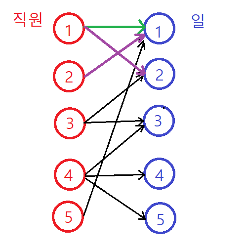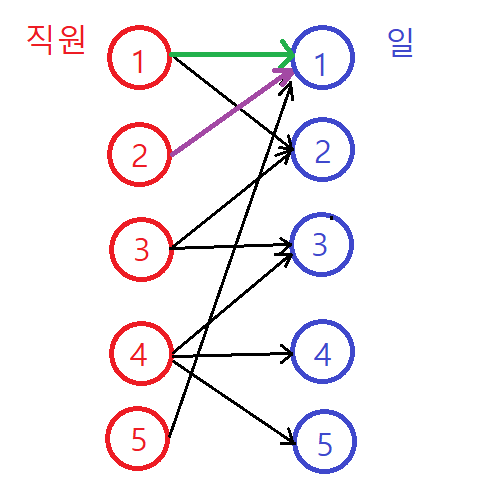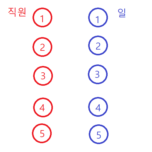 대충 이런 식으로, 직원과 일을 매칭시킬 때,