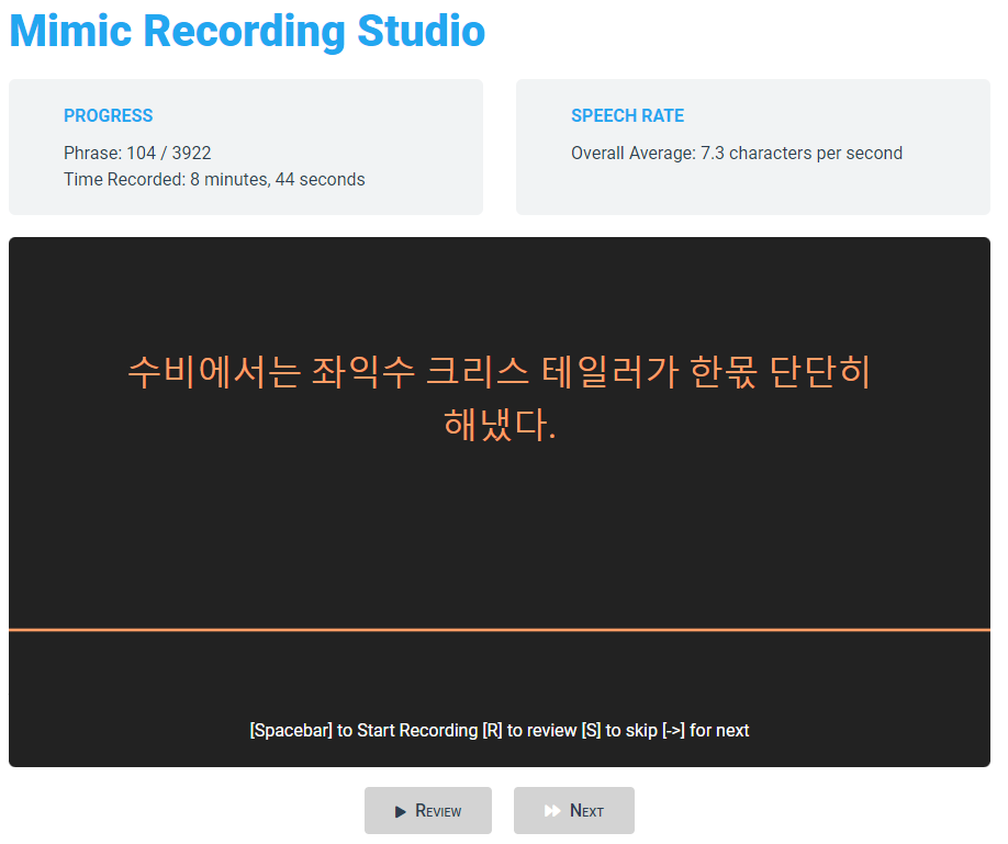이 SCE-TTS는 Mimic recording studio를 통해 음성 데이터를 얻고